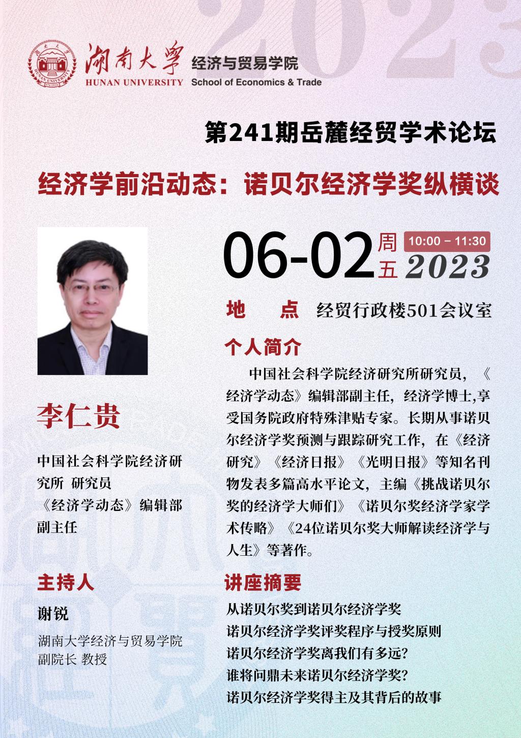 李仁贵:经济学前沿动态:诺贝尔经济学奖纵横谈