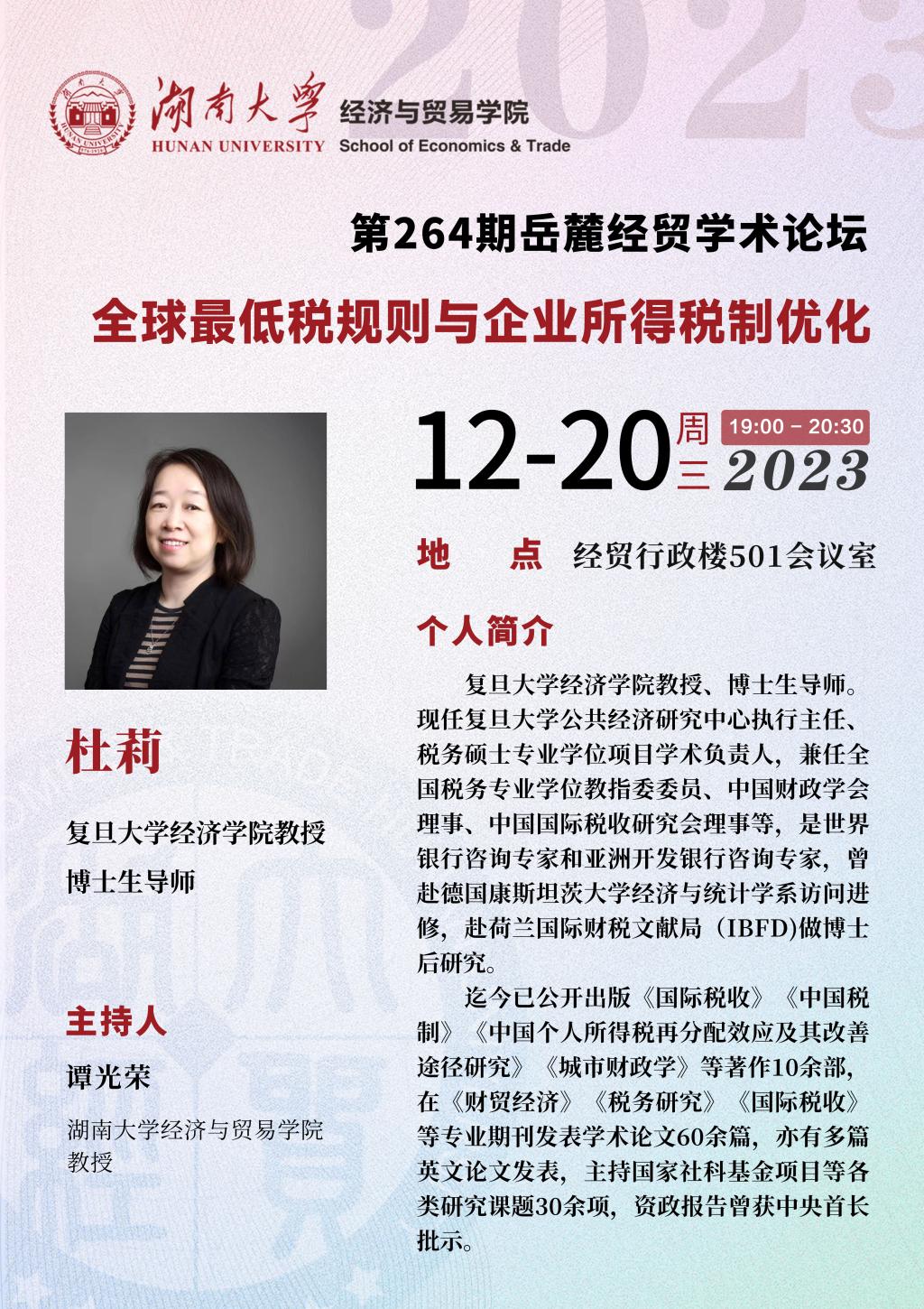 杜莉:全球最低税规则与企业所得税制优化