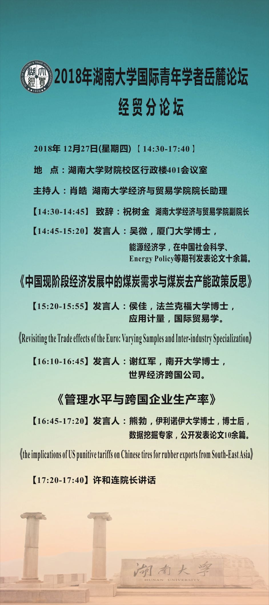 【专题】2018年度 tasexy 国际青年学者岳麓论坛经贸分论坛