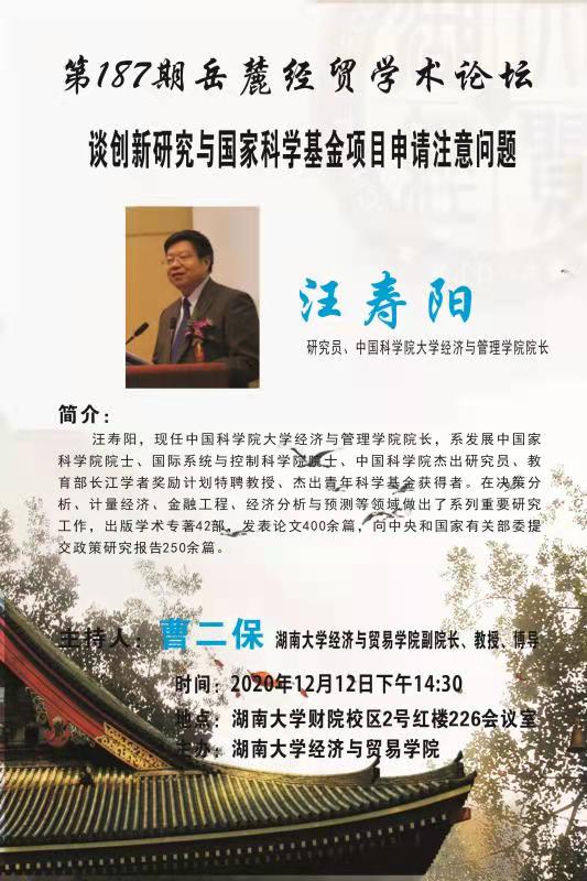 主讲人:中国科学院大学经济与管理学院院长 汪寿阳研究员