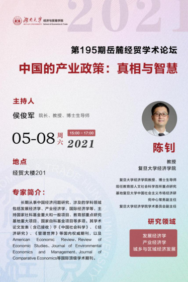 主讲嘉宾简介:陈钊,复旦大学经济学院教授,博士生导师,现任教育部人文社会科学百所重点研究基地复旦大学中国社会主义市场经济研究中心常务副主任、复旦大学经济学院学术委员会副主任。长期从事中国经济问题研究,涉及的学科领域包括发展经济学、产业经济学、国际经济学等,主持国家社科基金重大和一般项目、教育部重点研究基地重大项目、国家自科基金项目等多项。其学术论文发表(含已接收)于《中国社会科学》、《经济研究》、《管理世界》等国内权威期刊,以及American Economic Review、Review of Economic Studies、Journal of Environmental Economics and Management、Journal of Comparative Economics等国际顶级学术期刊。