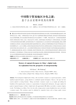 郭继文副教授、浙江大学马述忠教授合作撰写的学术论文《中国数字贸易地区分化之谜——基于企业家精神视角的解释》在《中国软科学》2024年第8期刊出。《中国软科学》是由中国软科学研究会和中国科学技术信息研究所主办的重要学术期刊。