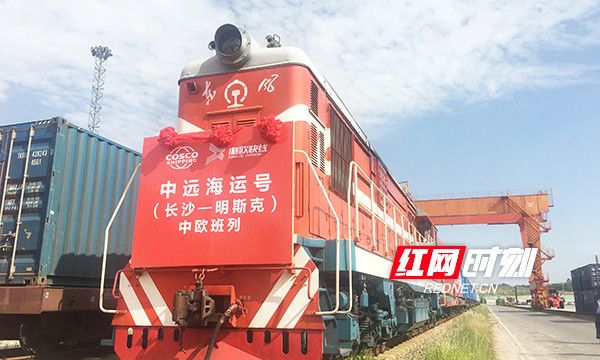 “湘欧快线”长沙-明斯克“中远海运”号中欧班列发车。