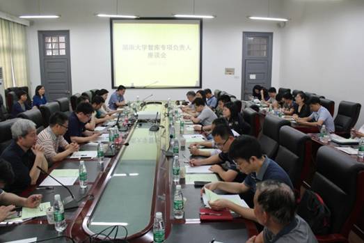2018年5月16日下午,社科处召开智库专项负责人座谈会,来自法学院、马克思主义学院、经济与贸易学院、建筑学院、工商管理学院、新闻传播与影视艺术学院、岳麓书院、中国语言文学学院等11个学院30余名项目负责人参会。侯俊军处长主持会议,省社科院智库办主任周湘智受邀作题为“智库报告撰写的道与术”专题讲座。