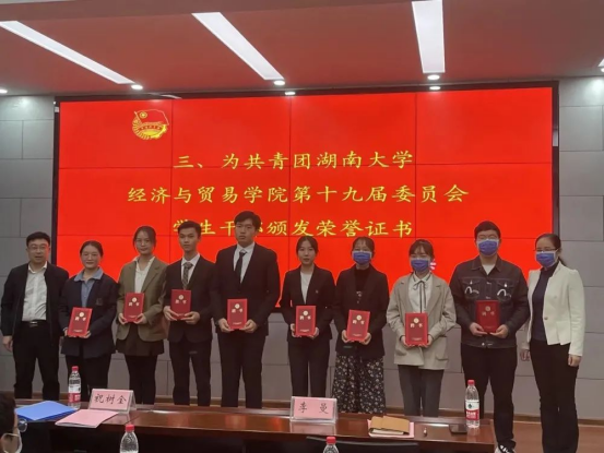 经济与贸易学院第十九届委员会学生干部颁发了任职证书。