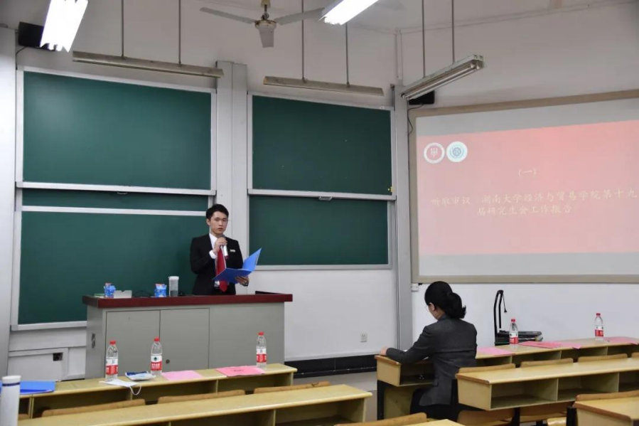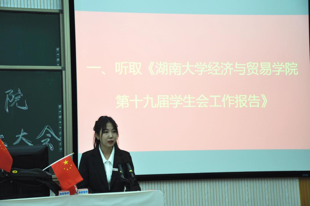 经济与贸易学院第十九届研究生会工作报告》。选举曾一玲,王依可,郭佳朋为新一届学生会主席团成员,王彦霖、黄婉莹、庹汉军为新一届研究生会主席团成员。