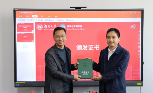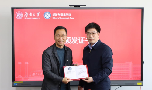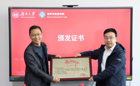 捐赠仪式上,向杰为陈正明颁发捐赠证书,院长、党委书记颁发荣誉证书和感谢状。“正明励志奖学金”以捐赠人“陈正明”其名“正明”取名,寓意“正直光明、公正明亮”,作为励志奖学金将用于奖励经贸学院品学兼优的贫困学子。
