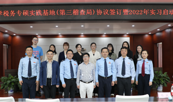 经济与贸易学院副院长谢锐、财政税务系主任谭光荣、第三稽查局各科室主要负责人和9名税务专业硕士参加启动仪式。本次活动由副局长欧耀清主持。