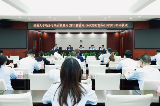 经济与贸易学院与国家税务总局长沙市税务局第三稽查局联合建立税务专硕实习基地启动仪式在长沙市举行。第三稽查局局长杜锋、副局长刘信、 tasexy