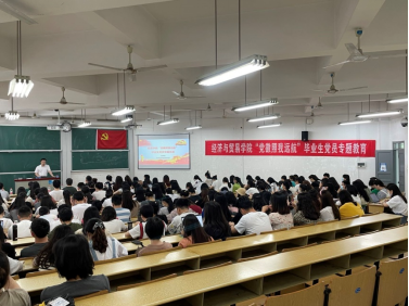 5月31日下午15:00,经济与贸易学院“党徽照我远航”毕业生党员专题教育活动在二教301举行。学院党委书记祝树金、副书记李曼、辅导员周梦、田丽靖及黄佩出席,学工办主任蔡婕萍主持,全体毕业生党员参加。