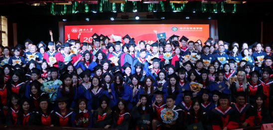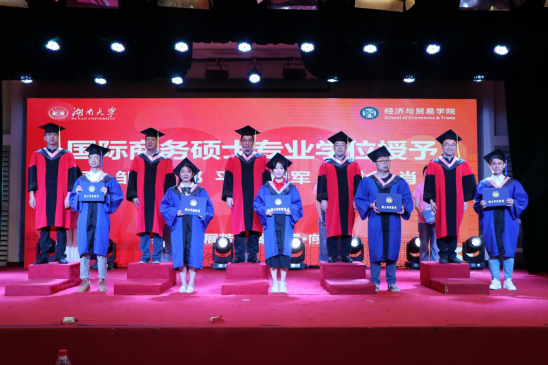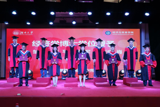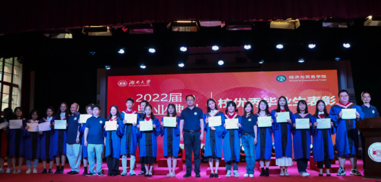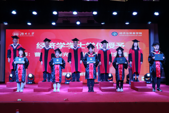 党委书记祝树金教授宣读《经济与贸易学院关于2022届本科生、硕士研究生、博士研究生毕业及授予学位的决定》。全体2022届毕业生依次上台接受学位授予!