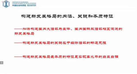 黄群慧教授首先从世界百年未有之大变局和中华民族伟大复兴的战略全局两个方面出发,深入阐释了理解我国构建新发展格局的现实背景,进一步从宏观到微观详细阐述了构建新发展格局的内涵、关键和本质特征。具体而言,构建新发展格局的内涵是加快构建国内大循环为主体、国内国际双循环相互促进的新发展格局;关键在于经济循环的畅通无阻;本质是实现高水平的自立自强。其次,黄教授详细介绍了我国构建新发展格局的“阶段—模式—动力”三维理论逻辑,结合今年稳中求进的工作总基调和经济工作方法论,黄教授总结了构建新发展格局的政策体系的具体内涵和政策着力点,特别强调区域政策与社会政策要紧紧围绕扎实推进共同富裕发力。以共同富裕为目标,区域协调发展强调的是不同区域基本公共服务均等化、基础设施通达程度等方面的可比性。黄教授高屋建瓴、深入浅出,讲授既有理论高度,兼具政策深度。整个讲座内容逻辑严谨,数据和资料非常详实。