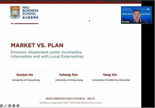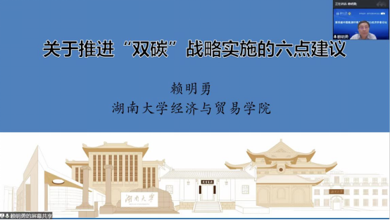 经济与贸易学院的赖明勇教授、生态环境部环境规划院管理与政策研究所所长董战峰研究员、香港大学经管学院何国俊副教授围绕分别以“零碳能源的市场动能与发展范式转型”“关于推进‘双碳’战略实施的六点建议”“国家‘十四五’环境经济政策创新重点方向”“Market vs. Plan: Emission Abatement under Incomplete Information and with Local Externalities”为主题发表主题演讲。