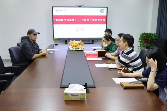 9月9日,经济与贸易学院为光荣入伍的本科2021级学生迪力木拉提·艾买提江举行欢送会并进行座谈交流。学院党委书记祝树金,党委副书记李曼,学工办主任蔡婕萍,辅导员胡煊赫、艾克帕尔·吐地参与交流。