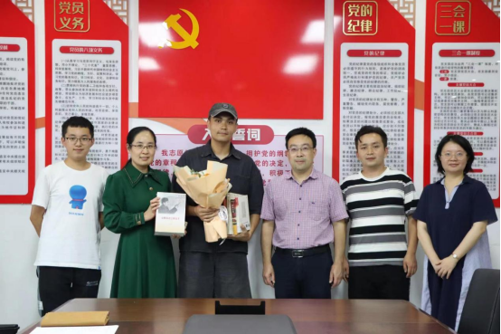 交流会结尾,祝树金书记代表学院向入伍学子赠书两套。迪力木拉提对学院的关怀表达了感谢,同时表示自己一定会不负学院的期望与老师的嘱托,在军营磨练自己,提升自己!