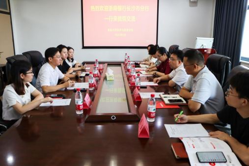 交流中,经济与贸易学院副院长曹二保、党委副书记李曼分别就学院专业特色、就业工作等内容进行了交流。浙商银行长沙市分行人力资源部负责人李璩彤围绕企业招聘情况、培训与晋升予以介绍。