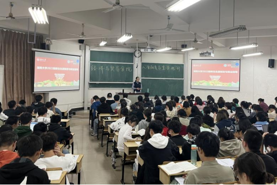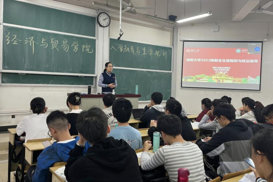 为帮助新生了解未来就业情况,引导新生做好职业规划,10月27日下午,经济与贸易学院在二教401教室组织召开了2022级新生生涯规划与就业指导讲座。讲座由学院党委副书记李曼主讲,2022级全体本科新生参加。