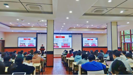 侯俊军详细介绍了二十大报告的形成过程,重点讲解了报告中的主要内容,并从经济学学科角度解读了“两个确立”的决定性意义、习近平新时代中国特色社会主义思想、中国式现代化以及高水平对外开放四个方面的内容。他表示,作为一名经济学学科的同学,应当把二十大报告中的经济建设、专题版块重点学习,学会用专业思维深刻领会党的行动纲领,学以致用解决实际问题。