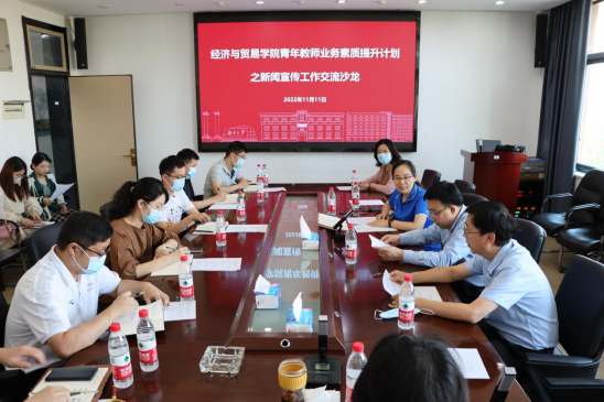 11月11日上午,经济与贸易学院举办新闻宣传工作业务素质提升沙龙,特别邀请学校党委宣传部副部长戚家坦作专题讲座。院党委书记祝树金、党委副书记李曼、学院宣传工作相关骨干人员参加,会议由党委副书记李曼主持。