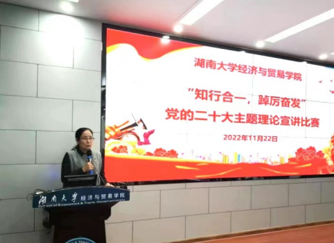 为引导广大青年学生深入学习贯彻党的二十大精神,激励广大青年提升理论水平,勇担时代重任,团结奋进新征程。11月22日晚,学院在行政楼201开展“知行合一,踔厉奋发”党的二十大主题理论宣讲比赛暨第17期发展对象培训班结业仪式,学院党委书记祝树金、党委副书记李曼、全体辅导员及第17期发展对象培训班学员参加活动。学工办主任蔡婕萍、学生刘汉轩主持。