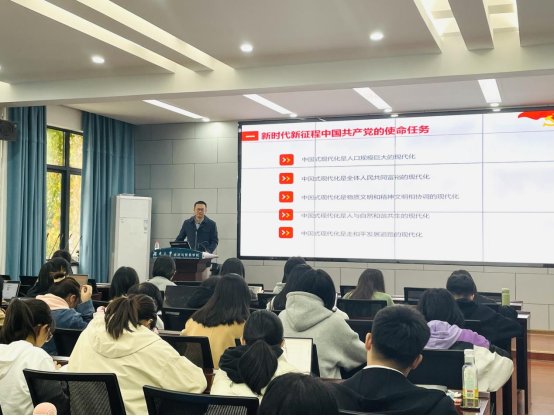 经济与贸易学院党委召开“学习贯彻党的二十大精神,推动数字经济高质量发展”专题党课,学院党委委员、副院长曹二保老师主讲,第73期入党积极分子培训班参加党课学习。