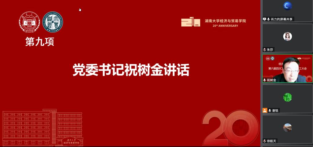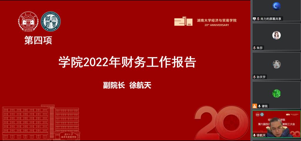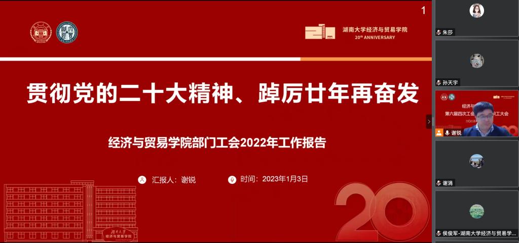 1月3日,经济与贸易学院六届四次工会会员、教职工大会召开。会议以在线形式举行,全体工会会员、教职员工参加,学院部门工会主席谢锐主持会议。