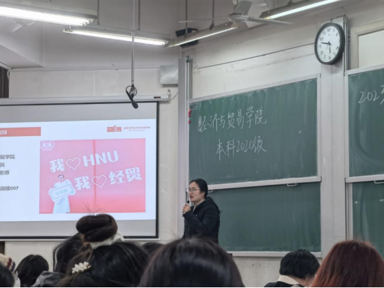 曾婧结合本学期重点工作,提醒同学们要诚信应考、高质量听课、劳逸结合,积极把握新学期校园学习生活的新常态,鼓励同学们认真做好个人发展规划,积极投入、以饱满的热情拥抱新学期。