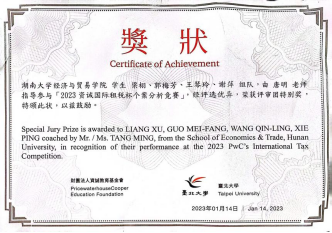 “经世致用”团队作为唯一一支以分散视讯形式线上参赛的队伍,克服重重困难,在比赛交流中默契配合,以新型态国际税收体系——“双支柱”方案为重要背景,分析梳理跨国集团在未来面对国际税收体系变革的过程中存在的重大税务风险,并结合公司架构和利润配置情况,为其潜在风险提出针对性的改革方案,获得了来自产官学各界专家评审的认可。