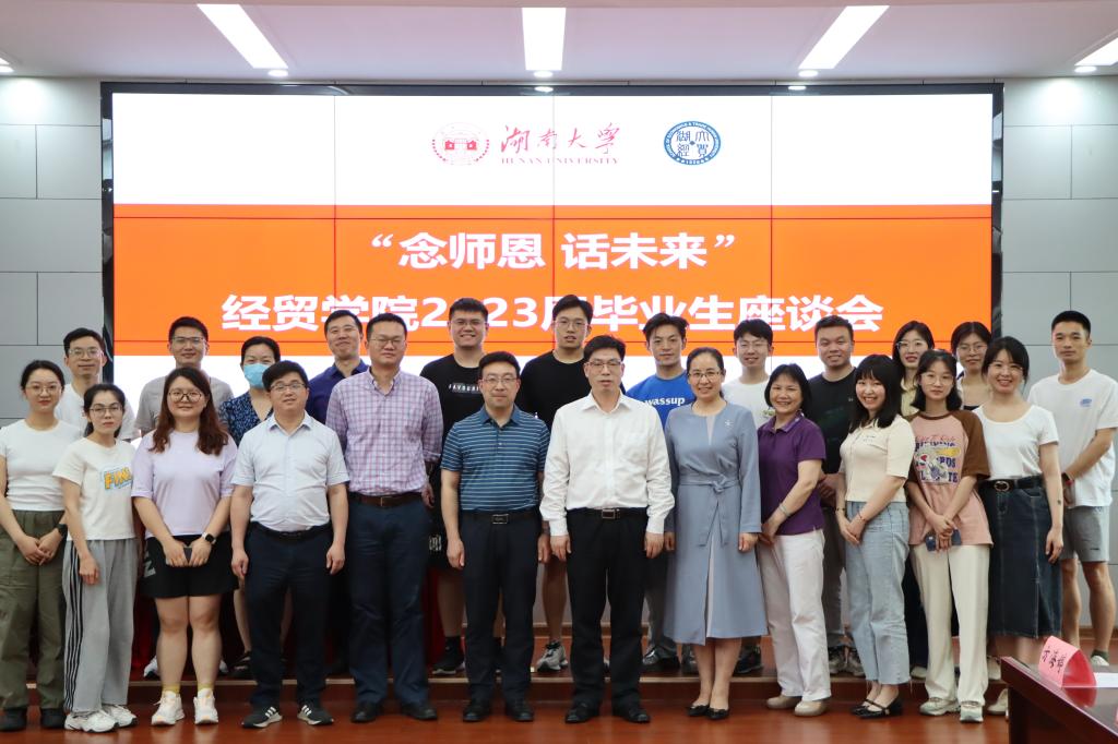 5月30日下午,经济与贸易学院召开主题为“念师恩 话未来”的2023届毕业生师生座谈会。学院党政班子、各系主任、青年教师代表、毕业班辅导员、本研教务秘书和本研毕业生代表参加会议。会议由院党委副书记李曼主持。