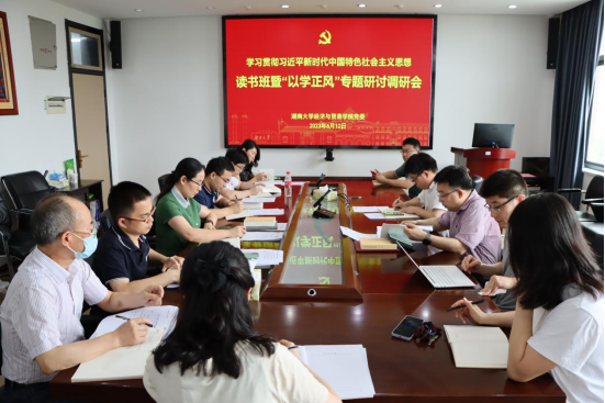 6月12日,经济与贸易学院党委班子成员开展学习贯彻习近平新时代中国特色社会主义思想读书班暨“以学正风”专题研讨会。学院党委书记祝树金主持,副院长肖皓领学,副院长徐航天、副处级组织员刘周平作主题发言,其他党委班子成员作交流发言。教工经济支部党员列席学习。