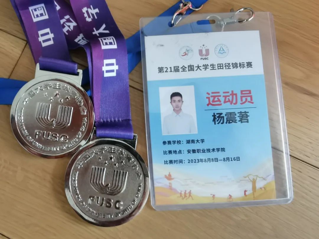 2019级本科生杨震莙在男子1500米项目中以3分53秒53获得第二名,打破了湖南省大学生参赛以来的最高记录;在男子5000米项目中以14分54秒76获得第二名。