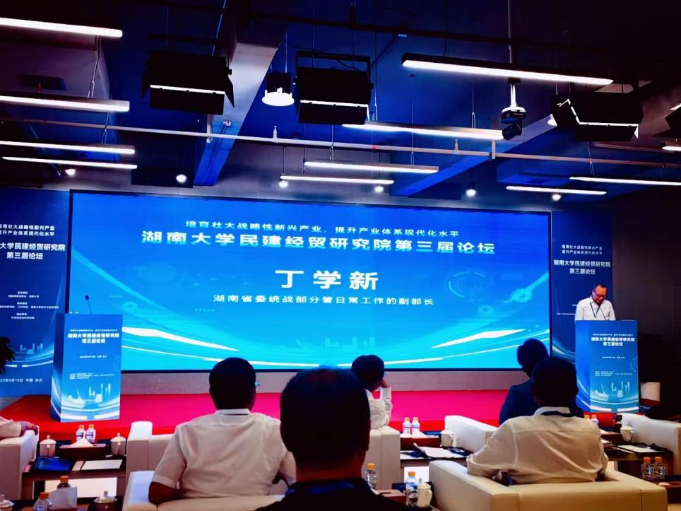 民建经贸研究院第三届论坛在长沙举行。论坛主题为“培育壮大战略性新兴产业,提升产业体系现代化水平”。