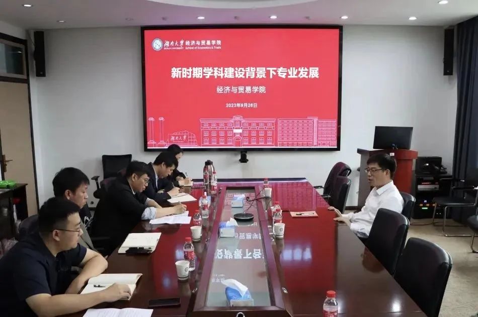 为推进学习贯彻习近平新时代中国特色社会主义思想主题教育走深走实,扎实推进深入基层调查研究,9月26日上午,经济与贸易学院在615会议室举办“新时期学科建设背景下专业发展”座谈会。院长侯俊军与国经贸系、经济学系、财政税务系、数字经济系主任、副主任、院党政办主任进行面对面交流,共话学院新时期学科建设发展背景下各系发展思路和亟待解决的问题。