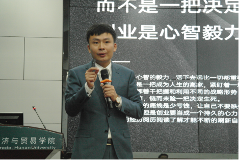 经济与贸易学院2023年双创成果展——岳麓经贸企业讲堂第三期在经济与贸易学院大楼201会议室举行。柠乐品牌集团创始人邓奇受邀作专题分享,活动由学院党委书记祝树金主持,柠乐集团品牌中心总监蒋敏、柠乐集团行政中心高级经理李彬思、学院党委副书记李曼出席活动,本研共计九十余名同学参加。