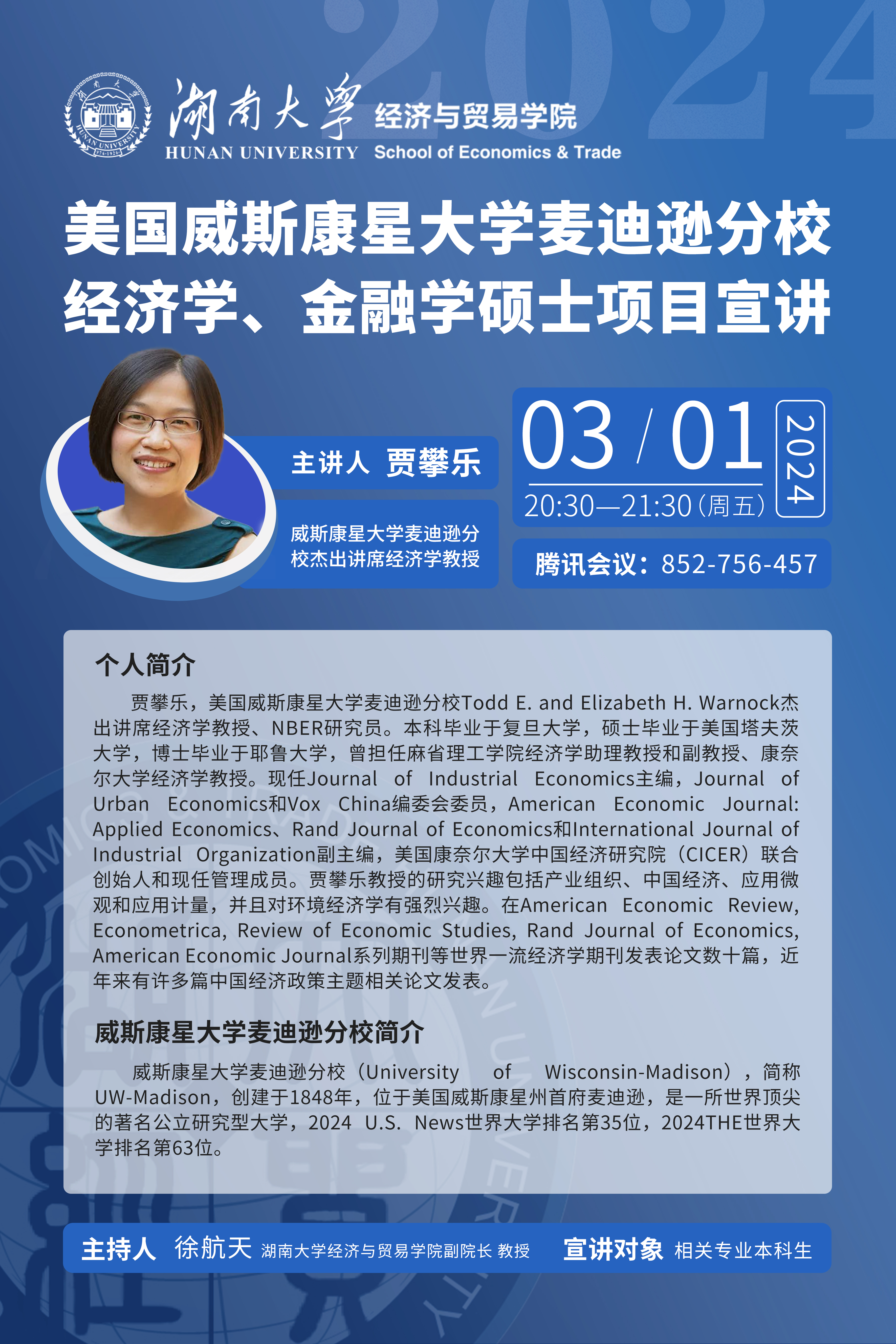 美国威斯康星大学麦迪逊分校经济学、金融学硕士项目宣讲