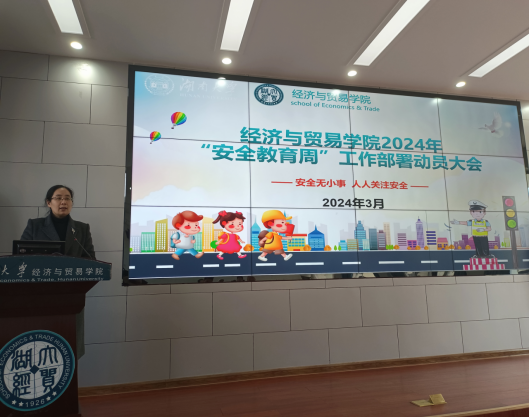 为深入贯彻学校关于安全稳定工作的总体要求,切实提高学生安全防范意识与安全防范能力,增强自觉维护校园安全的责任感和使命感,落实消防安全主体责任,减少校园不安全事故的发生,3月13日下午,经济与贸易学院召开2024年“安全教育周”工作部署动员大会。学院党委副书记李曼,学工办相关老师以及本研全体学生骨干参加会议。会议由辅导员艾克帕尔主持。