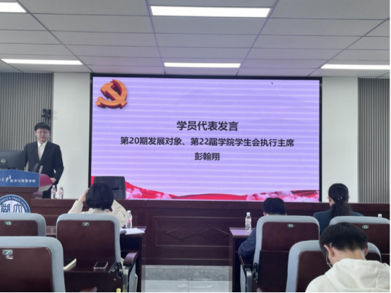 学员代表彭翰翔表示,要提高自我要求,以提高思想觉悟、坚定理想信念、勇于担当使命为目标,在培训班中要保持思想的先进性、行动上的超前性,做好“真学、真懂、真信、真用”,以一往无前的姿态,持续努力,成为担当民族复兴大任的时代青年。
