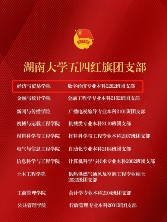 数字经济专业本科2202班团支部获评“五四红旗团支部”称号