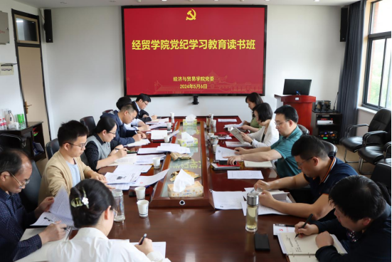5月6日下午,经济与贸易学院召开党纪学习教育读书班,传达学习关于党纪学习教育和纪律建设的重要精神,学院理论学习中心组成员、院长助理参加会议。会议由院党委书记邓利华主持。