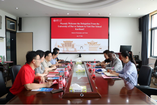 会上,祝树金对威廉·阿南基瑟教授(Prof. William A.L.Anangisye)的到来表示热烈欢迎,向其介绍了经贸学院的发展情况,并期待与他共同探讨中非经贸合作的前景,希望通过与达累斯萨拉姆大学的紧密合作,共同培养具有国际视野的经贸人才。