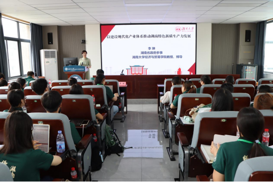 湖南省政府参事李琳教授以“以建设现代化产业体系为关键路径推动湖南特色新质生产力发展”为主题,围绕习近平总书记关于发展新质生产力的重要论述,通过系统的理论剖析、翔实的调研数据、典型的案例比较,全面剖析了新质生产力的内涵、发展路径以及发展新质生产力的重要意义。