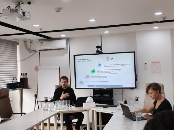 活动期间,GIZ的Mrs. DU Shetao对德国国际合作机构工作的简要介绍,GIZ中国负责人Mr. Daniel Hausmann深入阐述了GIZ在中国的合作项目及其对国际发展的贡献。项目负责人Ms. HOU Hansi详细介绍了德国与中国携手帮助落后国家的国际援助三角模式。