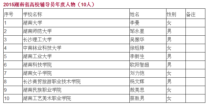 近日,湖南省教育厅发布了《关于2015湖南省高校辅导员年度人物推举活动结果的公示 》, tasexy