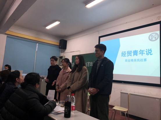 2018年12月18日14:30,一场异彩纷呈的经贸青年说系列活动之商业精英挑战赛在行政楼601室正火热开场。担任本次赛事评委的有经济与贸易学院国贸系莫莎副教授、谢涓老师和许漪老师,经济与贸易学院分团委书记蔡婕萍老师作为到场嘉宾出席本次比赛。