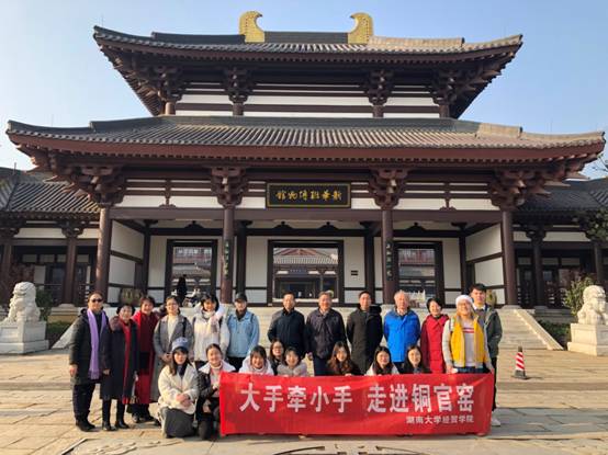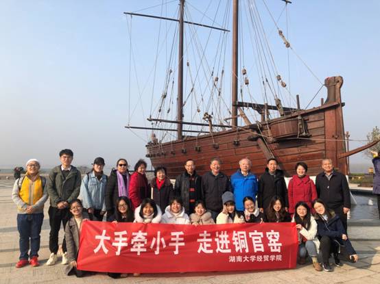 经济与贸易学院组织“大手牵小手,走进铜官窑”离退休教职工党支部与学生志愿服务共建活动。