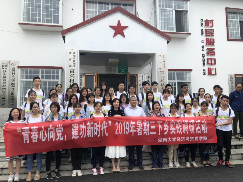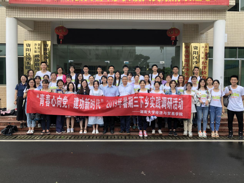 经济与贸易学院组织2019年暑期“三下乡”社会实践服务团40余人,于7月9日前往历史悠久、文化底蕴深厚的益阳市资阳区沙头镇开展课题式社会实践活动,为新农村建设助力。