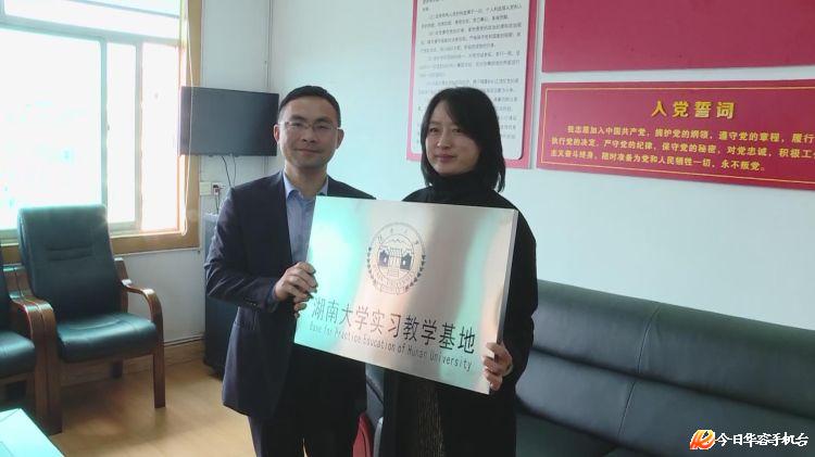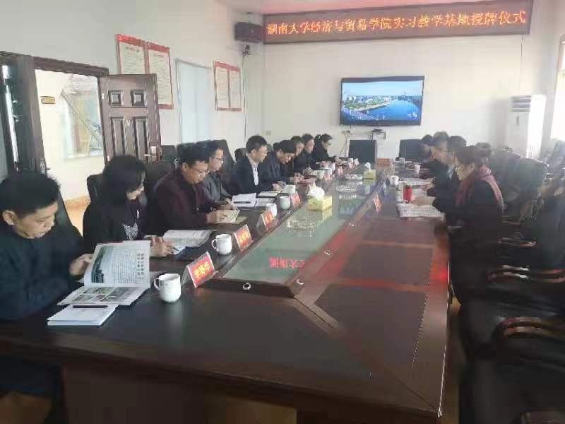 经济与贸易学院学科布局、人才培养、智库建设等,认为湖大经贸院经济学系已与华容县企业开展了两期本科生实习活动,学院与华容县人社局有很好的实习合作基础,同时他认为开展实习基地合作是第一步,未来双方在产业选择、经济发展等智库建设方面可以开展更深层次的合作。随后,县人力资源服务中心陈明霞主任从肖皓副院长手中接纳了实习基地的授牌。