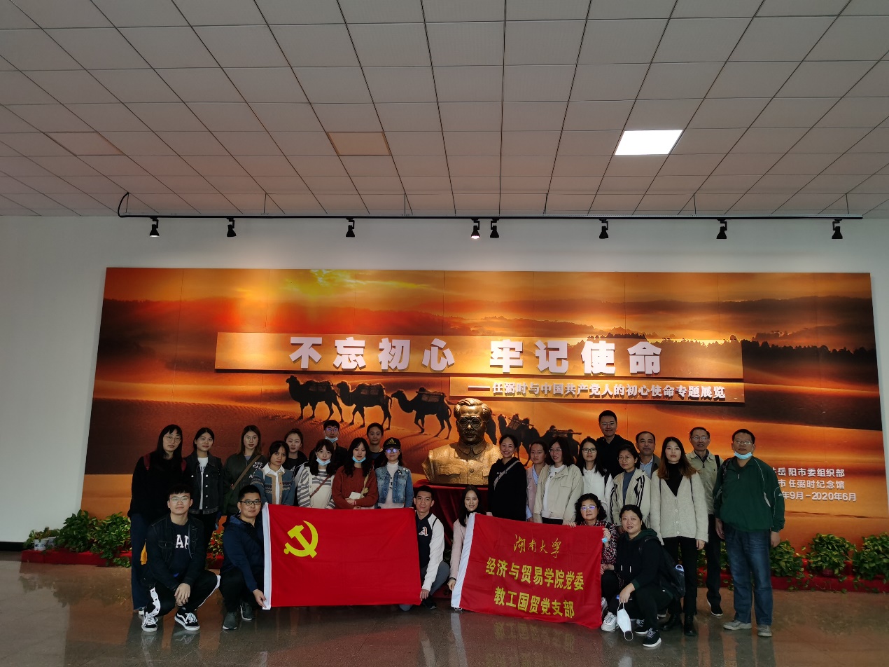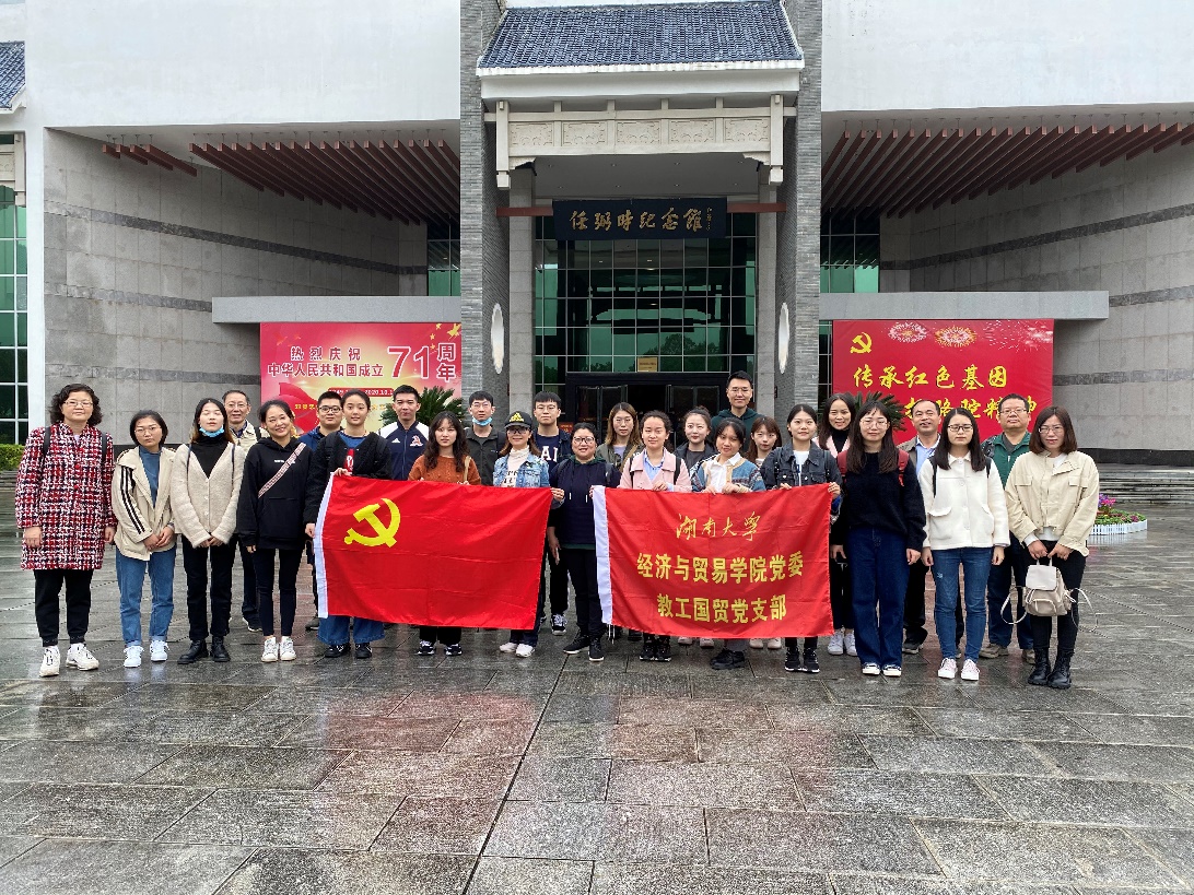 11月1日,为深入贯彻学习习总书记考察湖南的重要讲话精神和今年第三十六个教师节的重要寄语精神,强化“四史”学习教育,弘扬爱国主义精神,教工国贸党支部联合经济与贸易学院研究生导师团队第七、第十党支部学生党员开展了“学习骆驼精神,传承红色基因”的主题党日活动,前往汨罗县和长沙县参观任弼时故居和影珠山抗战遗址,共有26名党员参加了本次活动。