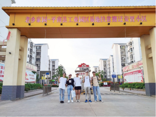 经济与贸易学院国贸1901班覃玉婷、郭璇,国贸1902班邹昱宁、宁美健,国贸1904班曾一玲围绕家乡重要扶贫手段——易地扶贫搬迁展开调查。五位同学于2020年7月29日来到平南县上渡街道大乙岭社区老乡家园,与搬迁农户、基层工作人员面对面交流,深入了解当地易地扶贫工作情况。