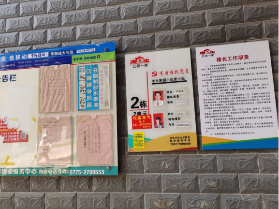 老乡家园2栋楼道公告栏